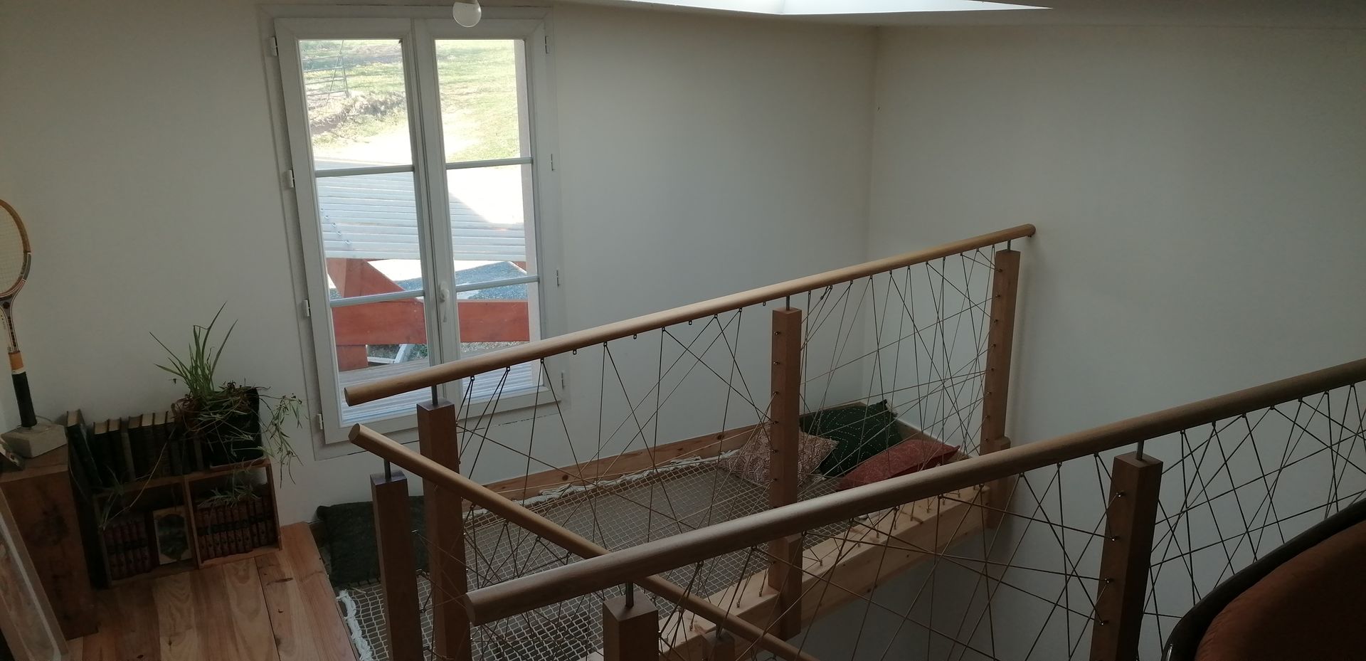 Les escaliers prennent une place non négligeable pour accéder à l'étage supérieur.